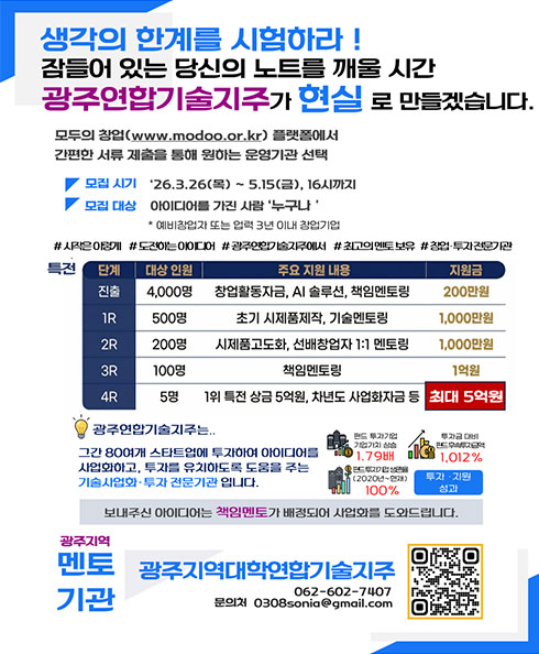 [전남매일] 광주연합기술지주, 팁스 깃발 들고 창업 생태계에 혁신 바람